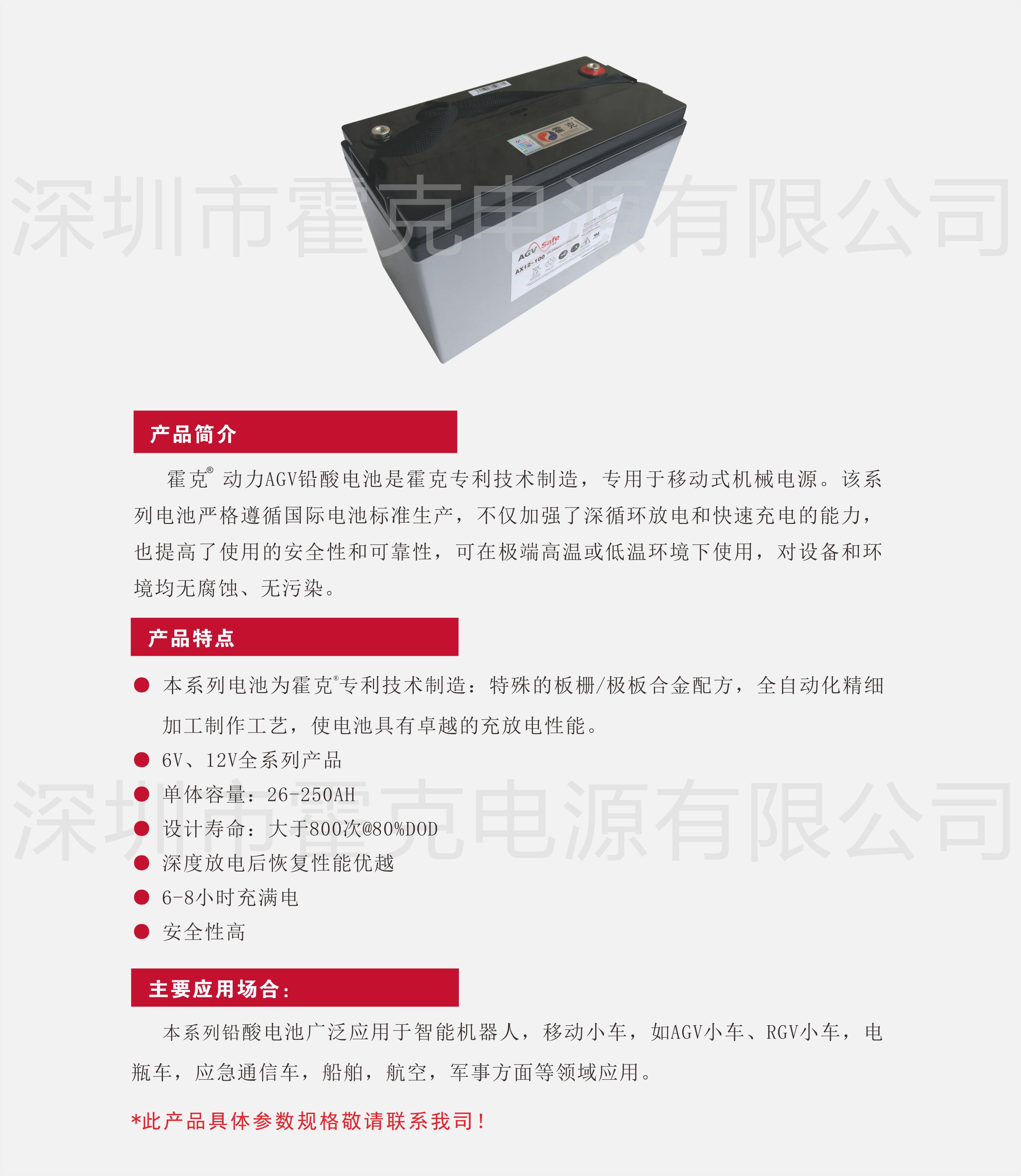 Hawker power AGV lead-acid battery is manufactured by Hawker's patented technology, which is specially used for mobile mechanical power supply. This series of batteries are produced in strict compliance with internat